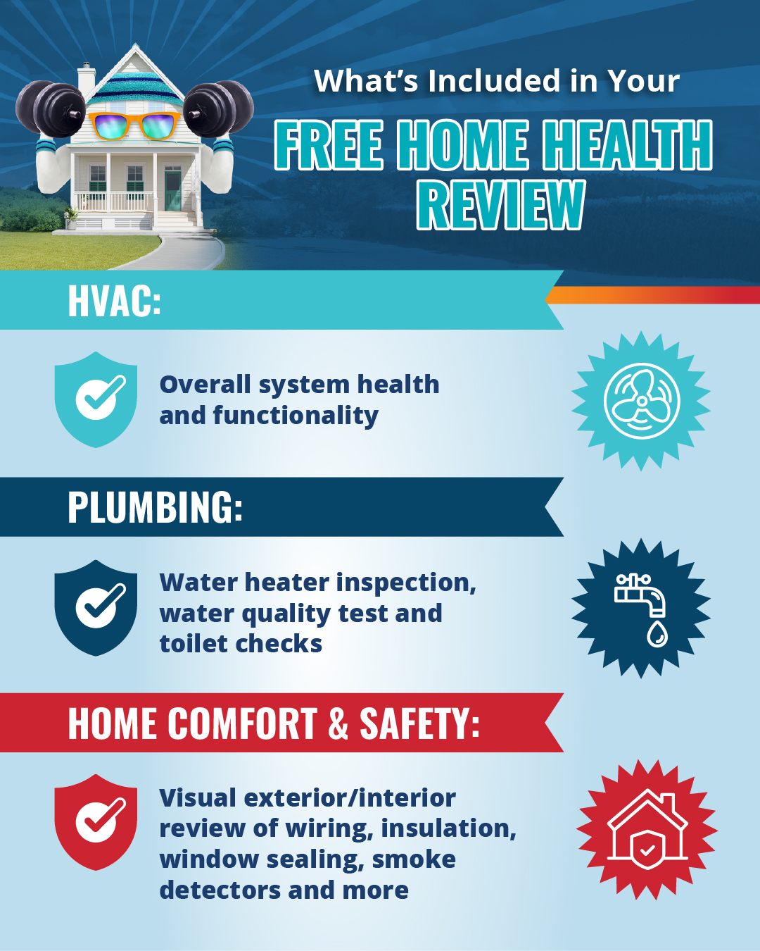 A: A multi-point checkup of your home’s key systems: HVAC, plumbing, indoor air quality, and overall efficiency.
